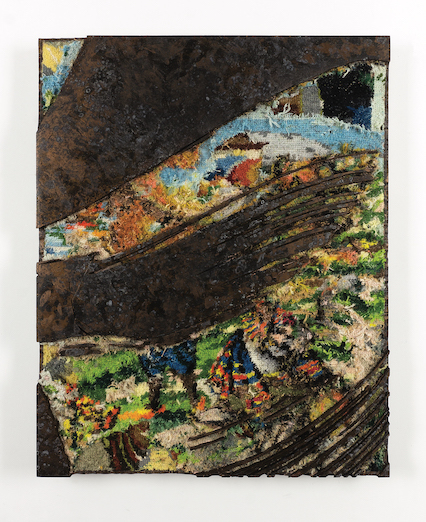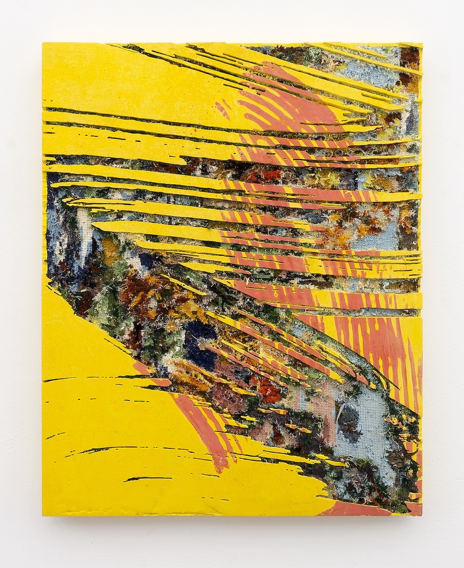 Sans titre, 2025, Résine, canevas chinés, gravure manuelle, sur bois, 62 x 49 cm, Signed and dated on the back