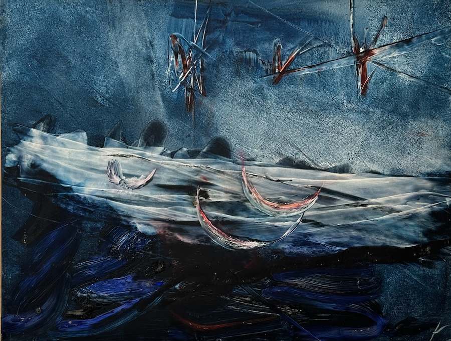 La mer aux frissons de volet, 1989, Oil on canva, 25 x 35 cm, Signed and dated on the back